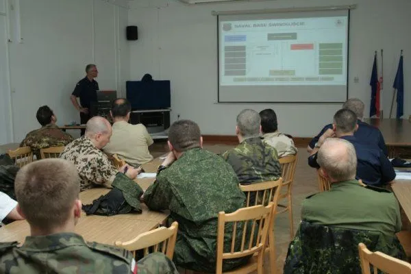 W trakcie spotkania w sali odpraw Komendy Portu Wojennego w Świnoujściu, gościom przedstawiono siły oraz strukturę flotylli. Dyplomatów w mundurach przywitał kontradmirał Krzysztof TERYFTER, dowódca flotylli. Podczas pobytu w Porcie Wojennym uczestnikom wizyty zaprezentowano infrastrukturę portową oraz zapoznano z okrętami i pomocniczymi jednostkami pływającymi.