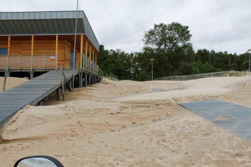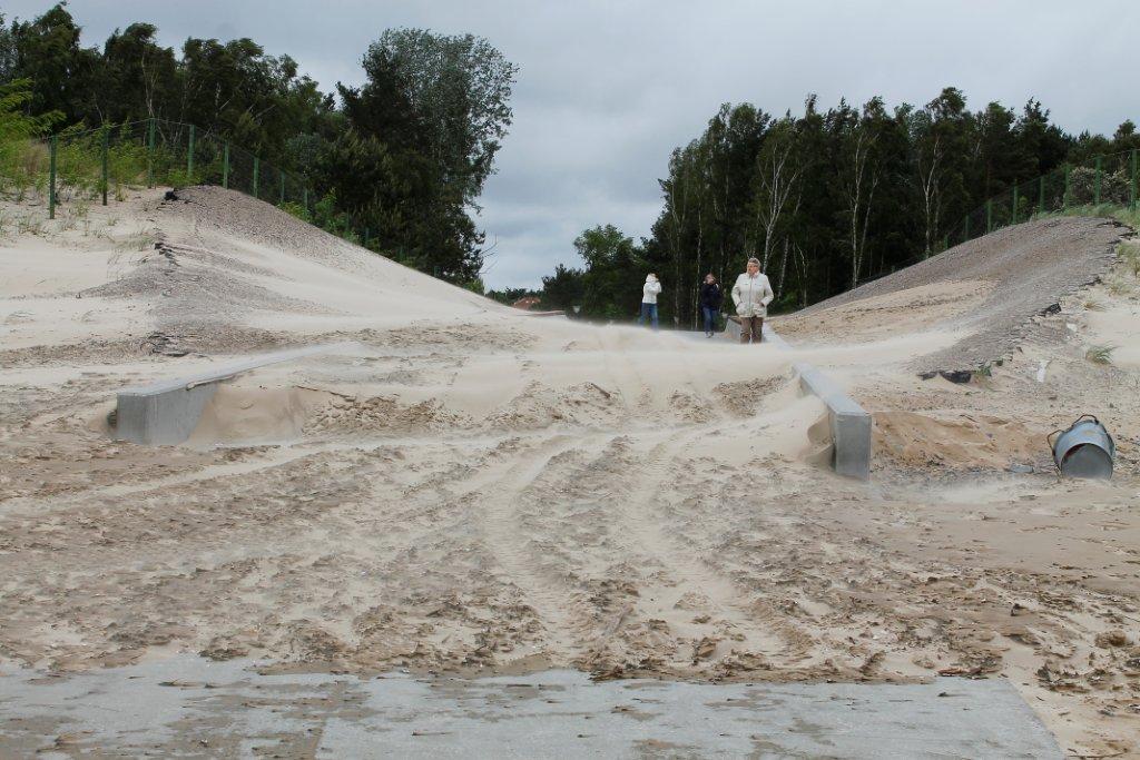 Jeszcze dziś ma być znany bilans strat spowodowanych w mieście przez szalejącą wichurę. Wiadomo już, że nad morzem najgorsza sytuacja jest na przejściach na plażę Aleją Interferie oraz na przedłużeniu ulicy Powstańców Śląskich (koło centrum WOPR). Na razie warunki pogodowe uniemożliwiają rozpoczęcie usuwania z tych przejść nawianego piachu. - Wiatr stale nawiewa nowe hałdy piachu – mówi Ewa Tańska, kierownik świnoujskiego kąpieliska. – Na przejściu Aleją Interferie popodnoszone są również płyty, którymi można dojść nad brzeg morza.