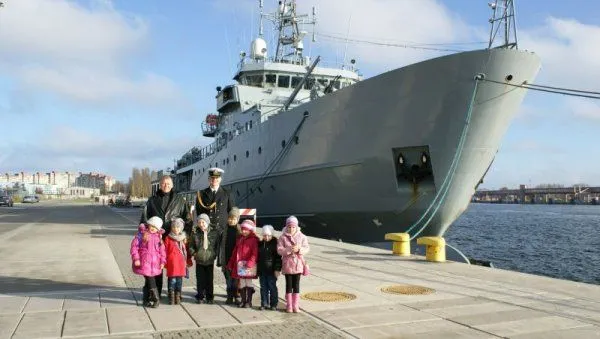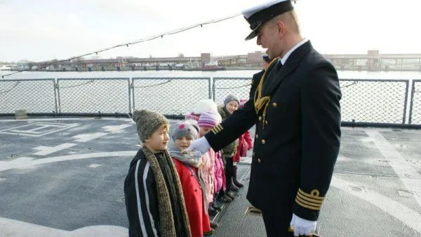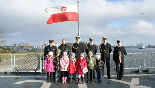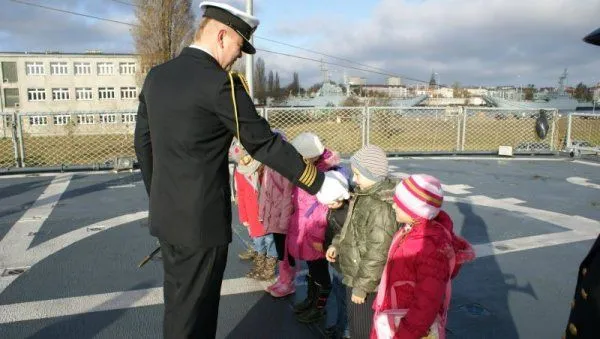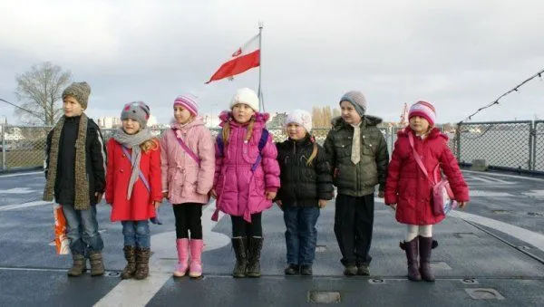 Aktu pasowania na ucznia, kordzikiem oficerskim, dokonał kpt. mar. Grzegorz MARSZAŁEK, w imieniu dowódcy okrętu złożył on również dzieciom życzenia wszelkiej pomyślności, zdrowia oraz wytrwałości w nauce. Pierwszoklasiści przysięgali sumiennie się uczyć oraz dbać o dobre imię szkoły i klasy. Z okazji wstąpienia do szkolnej rodziny życzenia osiągania jak najlepszych wyników w nauce złożyli także Piotr KARLIŃSKI, dyrektor szkoły oraz kmdr ppor. Tadeusz KUSIAKIEWICZ z dowództwa 8. Flotylli Obrony Wybrzeża. Po „pasowaniu” pierwszoklasiści zwiedzili okręt, poznali marynarskie zwyczaje oraz warunki służby na morzu.