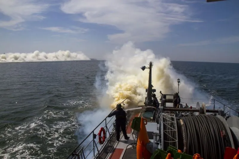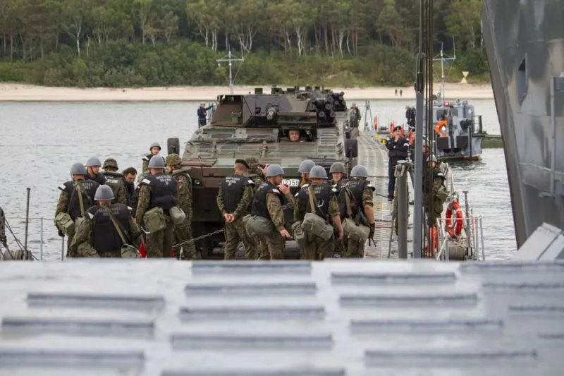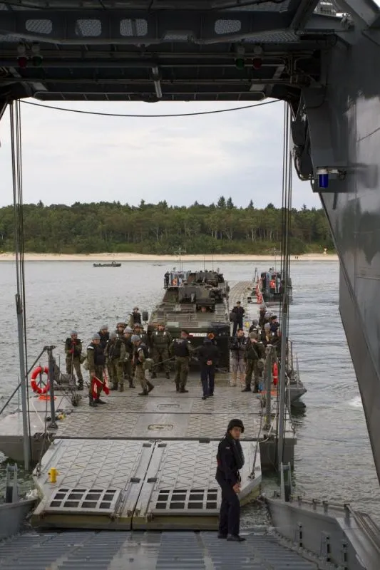 Dzisiaj na wodach Zatoki Pomorskiej miały miejsce kolejne epizody szkoleniowe największych tegorocznych manewrów sił 8. Flotylli Obrony Wybrzeża pod kryptonimem „WARGACZ 2014”. Okręty transportowo – minowe, kutry transportowe oraz pomocnicze jednostki pływające wykonały strzelania artyleryjskie, manewrowały w szykach okrętowych oraz udzielały sobie wzajemnej pomocy podczas np. walki z pożarem. Na pokłady okrętów transportowo - minowych wjechały ROSOMAKI.