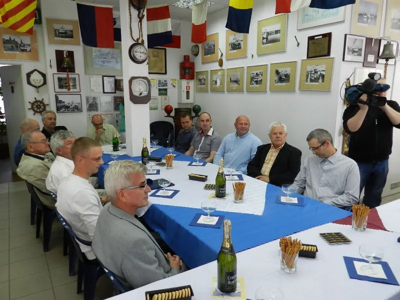Koledzy z Żeglugi Świnoujskiej wspólnie z prezydentem, przewodniczący Rady Miasta i dyrektorem wznieśli bezalkoholowym szampanem toast za Arkadiusza Kołyszko.