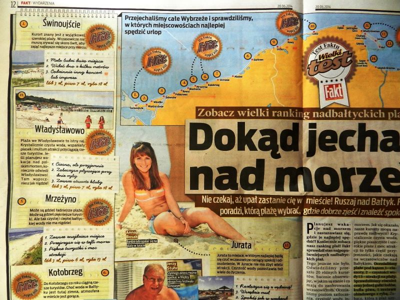 Popularny dziennik FAKT opublikował w weekendowym numerze Wielki Ranking Nadbałtyckich Plaż odpowiadając swoim Czytelnikom na pytanie : dokąd warto w tym roku pojechać nad morze? Dziennikarze odwiedzili 20 różnych kurortów , jak  informują : "bacznie obserwując w jakim stanie są przede wszystkim plaże i co nadmorskie miejscowości mają do zaoferowania swoim gościom.
