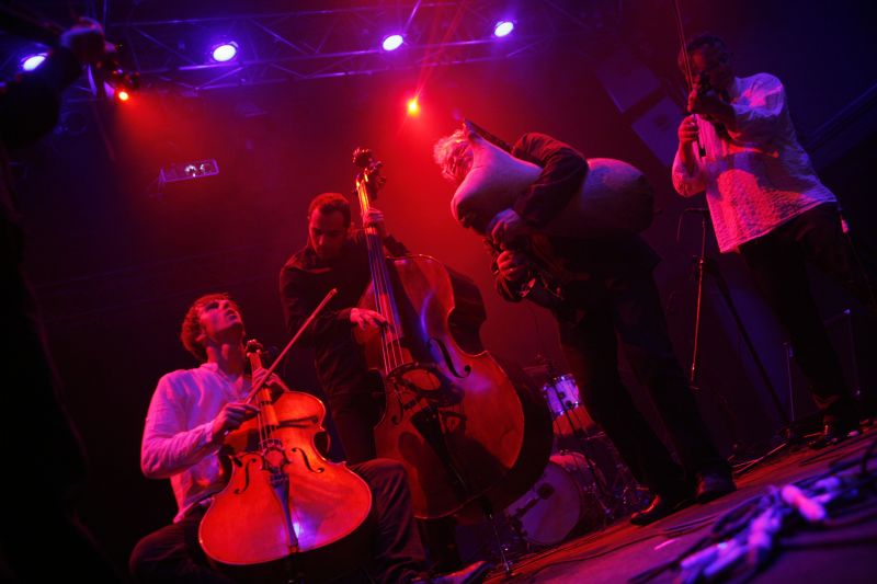 Z uśmiechem i bez stresu publiczność przejdzie do Muszli Koncertowej na Promenadzie. Dołączą do nich zestresowani kabareciarze i wspólnie wysłuchają dwóch koncertów – LABORATORIUM PIEŚNI oraz gości specjalnych, zespołu VOŁOSI. Ci pierwsi oczarują białym śpiewem, jego niezwykłymi technikami oraz możliwościami. A VOŁOSI, bez wątpliwości - energią. Ten improwizujący kwintet smyczkowy swoje charakterystyczne brzmienie zawdzięcza współpracy muzyków klasycznych z ludowymi. Efekt końcowy nie mieści się jednak w kategorii popularnej muzyki folk. Jest on znacznie bliższy chopinowskiej idei nadania muzyce tradycyjnej znamion sztuki wysokiej.