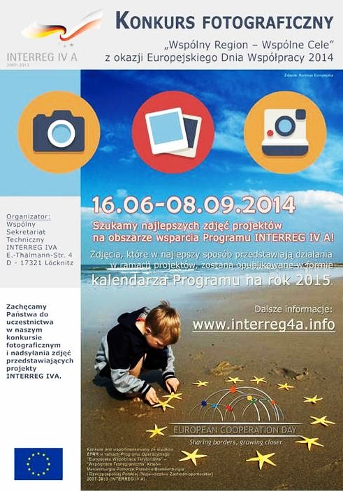W ramach tegorocznych obchodów Dnia Europejskiej Współpracy, Wspólny Sekretariat Techniczny zaprasza do udziału w konkursie fotograficznym „Wspólny Region – Wspólne Cele”. Celem konkursu fotograficznego jest wyraziste przedstawienie efektów Programu INTERREG IVA w następujących zakresach tematycznych projektów: gospodarka i nauka, infrastruktura i transport, edukacja, ochrona środowiska, zdrowie, kultura.