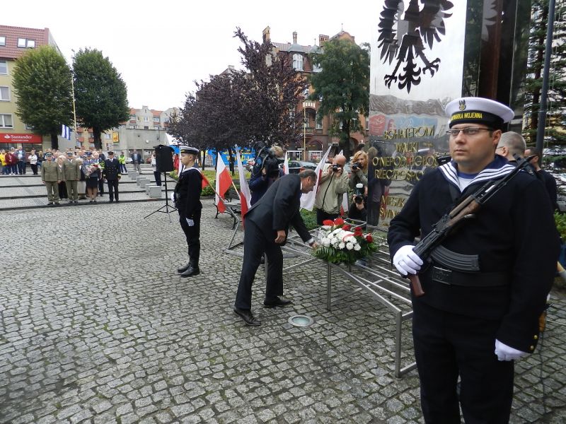 W dniu 1 września 2014 roku o godzinie 10.00 na Placu Słowiańskim, przy udziale Orkiestry i Kompanii Honorowej 8. Flotylli Obrony Wybrzeża, odbyły się uroczystości upamiętniające 75. rocznicę wybuchu II wojny światowej. Po odczytaniu Apelu Pamięci, delegacje władz samorządowych, Dowództwa Garnizonu, służb mundurowych, organizacji kombatanckich, miejskich instytucji, związków zawodowych, placówek oświatowych i harcerzy oraz dyrektor Międzynarodowego Ośrodka Spotkań Młodzieży GOLM Mariusz Siemiątkowski złożyły wiązanki kwiatów pod Pomnikiem Bohaterom Walk o Niepodległość Rzeczpospolitej.