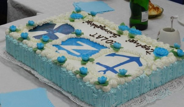 Uroczystość nie mogła obyć się - oczywiście - bez urodzinowego tortu, na który, jak ktoś zażartował, złożyło się tyle ziaren mąki ilu pasażerów przewiozła w swej historii Żegluga Świnoujska.