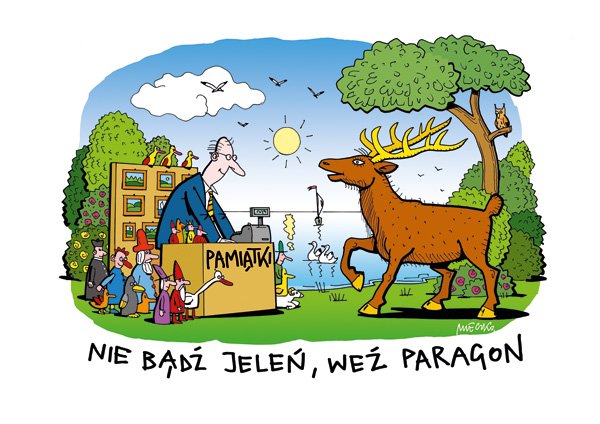 [Warszawa, 8 lipca 2011 r.] Konsumentów z dużym i małym portfelem, usługobiorców, turystów, pasażerów, kibiców łączy jedno – wszyscy mają prawo do otrzymania dowodu zakupu. Najprostszym jest paragon. Tegoroczną akcję Ministerstwa Finansów Nie bądź jeleń, weź paragon, przypominającą o konieczności wystawiania oraz przechowywania paragonów, wspiera Urząd Ochrony Konkurencji i Konsumentów. Będzie ją promował rysunek jelenia na zakupach autorstwa Andrzeja Mleczki, jednego z najpopularniejszych polskich rysowników.