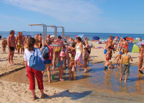 Na strzeżonym kąpielisku mamy prysznice, dogodne wejścia na plażę prowadzące niemal nad sam brzeg morza, dzięki czemu niepełnosprawni czy mamy z małymi dziećmi w wózkach mogą wygodnie i bezpiecznie dotrzeć nawet niemal nad sam brzeg. W tym roku możemy pochwalić się kolejnym odcinkiem deptaka na wydmach, kolejną nową toaletą, wejściem na plażę czy wreszcie przebieralniami.