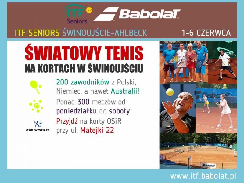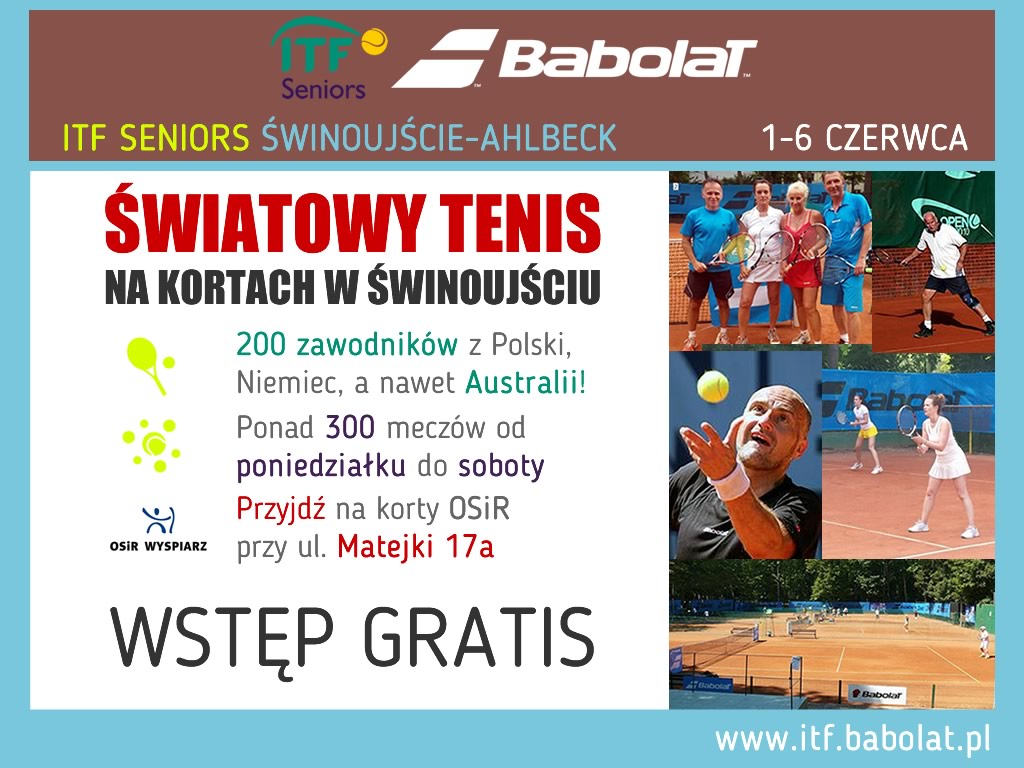 Najmłodsi mają 35, najstarsi – ponad 85 lat. Są gracze ze Świnoujścia, ale też z Australii. Grają kobiety i mężczyźni – w sumie ponad 200 tenisistów. Od poniedziałku, 1 czerwca, na kortach przy ul. Matejki i na obiekcie w Ahlbecku rusza międzynarodowy turniej Babolat ITF Seniors. To zawody, w których występują „seniorzy”, czyli zawodnicy, którzy mają przynajmniej 35 lat. Wielu z nich to byli profesjonaliści –warto przyjść zobaczyć m.in. efektowną grę Beniamina Budziaka, który był mistrzem świata w swojej kategorii. Spotkania odbywają się codziennie – zaczynają w południe, trwają do wieczora. Wejście na korty jest za darmo.
