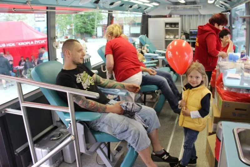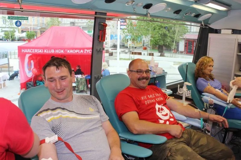 Niemal przez całą niedzielę na placu Wolności odbywała się akcja poboru krwi z okazji Światowego Dnia Krwiodawcy. Wszystko poszło zgodnie z planem, no może za wyjątkiem pogody (deszczyk nas nie oszczędził). Punktualnie od 10.00 rozpoczął działanie ambulans i od razu ustawiła się kolejka dawców. Oczywiście jako pierwsi krew oddali organizatorzy czyli członkowie Harcerskiego Klubu HDK „Kropla Życia”.