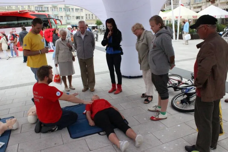 Potem na plac Wolności zjechali uczestnicy Rowerowej Masy Krytycznej i motocykliści. O 11.00 po odliczaniu zainicjowanym przez pana wiceprezydenta Pawła Sujkę w niebo poszybowały okolicznościowe balony z helem. W trakcie akcji odbył się trening fitness i pokaz zawodników taekwondo. W naszym klubowym namiocie rozgościli się wolontariusze DKMS a nieco dalej działali ratownicy WOPR i przedstawiciele Fundacji Banku PKO BP. Niespodzianką była wizyta gości z Niemiec, wśród których był m.in. prezes Niemieckiego Czerwonego Krzyża Meklemburgia-Pomorze Przednie eurodeputowany pan Werner Kuhn.