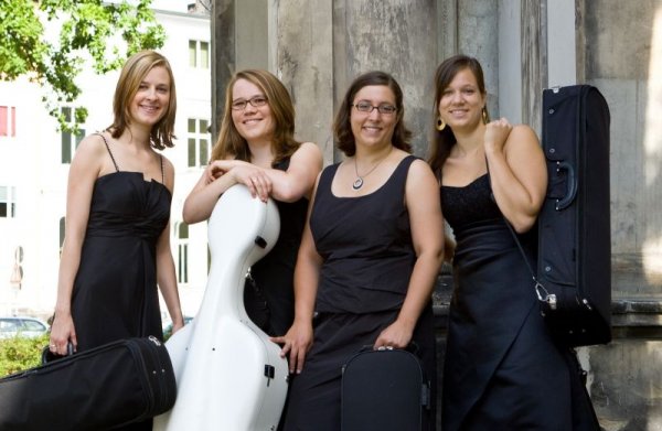 Kwartet Almandin zostal założony w roku 2001 przez cztery studentki Wyżej Szkoły Muzyki i Teatru w Hannoverze. W latach 2008/2009 kobiety muzycy urodzone w latach 1983 i 1984 ukończyły swoje studia w szkołach wyższych w Hannoverze (prof. Ulf Schneider, skrzypce), w Lubece (prof. Barbara Westphal, altówka) i w Hamburgu (prof. Bernhard Gmelin, wiolonczela). Od roku 2009 kontynuują swoje studiach w klasach solo prof. F. Helmersona (Kolonia, wiolonczela), prof. Volkera Jacobsena (Hannover, altówka) i prof. Ulricha Schneidera (Hannover, skrzypce). Kwartet został odznaczony licznymi nagrodami, w kwietniu 2005 pierwszą nagrodą podczas Charles Hennen Concours w Heerlen (Holandia), w listopadzie 2005 nagrodą muzyczną Landu Dolnej Saksonii Praetorius. W roku 2008 kwartet otrzymał nagrodą muzyczną Bruno Freya Krajowej Akademii Muzycznej Badenii Wirtembergii, a w roku 2009 wygrał konkurs Mendelssohna Niemieckich Wyższych Szkół Muzycznych, podczas którego otrzymał dodatkowo nagrodę „Przyjaciół Młodych Muzyków”. W tym samym roku kwartetowi przyznano w ramach Uznamskiego Festiwalu Muzycznego Nagrodę Specjalną Fundacji Oskara i Very Ritter. Oprócz nagrań dla telewizji i radia dla NDR i SWR kwartet Almandin ma za sobą szeroką działalność koncertową. Kobiety muzycy często brały udział w krajowych i międzynarodowych festiwalach, np. w Uznamskim Festiwalu Muzycznym, włoskim festiwalu muzycznym „Santa Fiora In Musica”, w „Międzynarodowych Dniach Muzyki Freden” i w Dniach Maxa Regera w Weiden oraz dawały koncerty w Finlandii, Turcji, Belgii i we Włoszech. Oprócz tego grały koncert z Orkiestrą Symfoniczną Göttingen (Louis Spohr – koncert na kwartet smyczkowy i orkiestrę). W latach 2005-2008 kwartet był stypendystą fundacji Nadrenii Palatynatu „Villa Musica”, w roku 2006 wziął udział w European Chamber Music Akademy. Obecnie opiekuje się nimi Volker Jacobsen (wcześniej Kwartet Artemis) z Wyższej Szkoły Muzyki i Teatru w Hannoverze. Muzyczne pobudzenie Kwartet otrzymał również między innymi od Trio Jean Paul, prof. Ulfa Schneidera, prof. Hatto Beyerle, Kwartetu Debussy i Kwartetu Szymanowskiego.