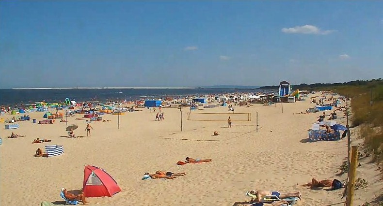 Na zdjęciu świnoujska plaża w piątek 21 sierpnia 2015 o godz. 13.15. Aktualny obraz http://plaza.swi.pl/