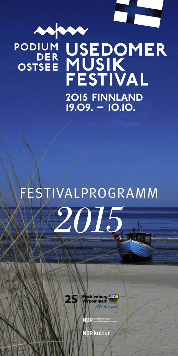 ... tam gdzie Morze Bałtyckie jest najcieplejsze, a plaża najpiękniejsza, tam leży wyspa Uznam... Przez trzy tygodnie na całej wyspie będą mieli Państwo okazję wysłuchać wspaniałych artystów, którzy przybliżą publiczności "Małe wielkie mocarstwo muzyki". W 2015 roku to właśnie Finlandia jest tematem przewodnim Uznamskiego Festiwalu Muzyki 2015. Wystąpią wspaniali fińscy artyści oraz najlepsze niemieckie zespoły, które zaprezentują fińską muzykę.