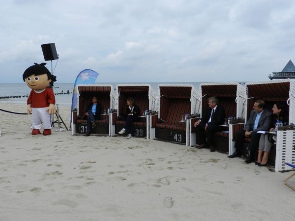 W niecodziennej scenerii plaży kurortu Heringsdorf odbyła  się konferencja prasowa zorganizowana przez stację ZDF, poświęcona utworzeniu studia telewizyjnego, z którego transmitowane będą mecze piłkarskie Euro 2012.