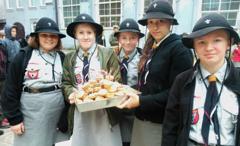 Najstarsi – wędrownicy, przygotowali ognisko, na którym po za tradycyjnymi kiełbaskami można było zjeść przygotowaną przez nich samodzielnie zupę ogórkową. Najedzeni wszyscy zebrali się na zbiórce, do wspólnego apelu. Po czym zwiedzaliśmy podziemne miasto z przewodnikiem. Na apelu odczytano wyniki z rajdu. Puchar przechodni szczepowego dla najlepszej drużyny w Rajdzie Jesiennym, pierwsze miejsce, powędrował do 3 SDH „Wenedzi”. Na koniec został wniesiony tort jubileuszowy przygotowany przez harcerki z 27 ŚDH „Rzepichy” o nazwie „Jeżynka”. Po poczęstunku rajd zakończyliśmy tradycyjnym kręgiem i zdjęciem.