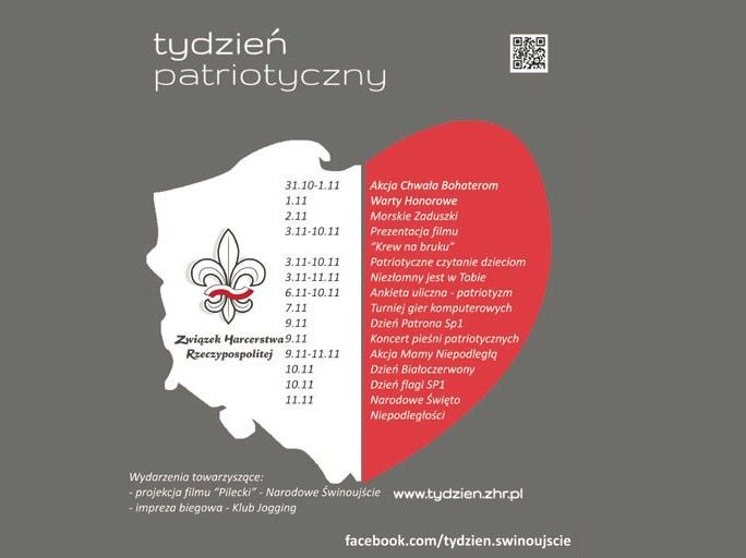 W dniach 31.10 - 11.11.2015 w naszym mieście odbyła się druga edycja „Tygodnia Patriotycznego” organizowanego w Świnoujściu przez III Szczep Harcerski „Słowianie” ZHR im. Zawiszy Czarnego. Jest to już ósma edycja organizowana w Polsce przez Związek Harcerstwa Rzeczpospolitej. Akcja ta miała na celu koordynowanie różnych inicjatyw o charakterze patriotycznym i ich organizowanie wspólnie z jej partnerami.