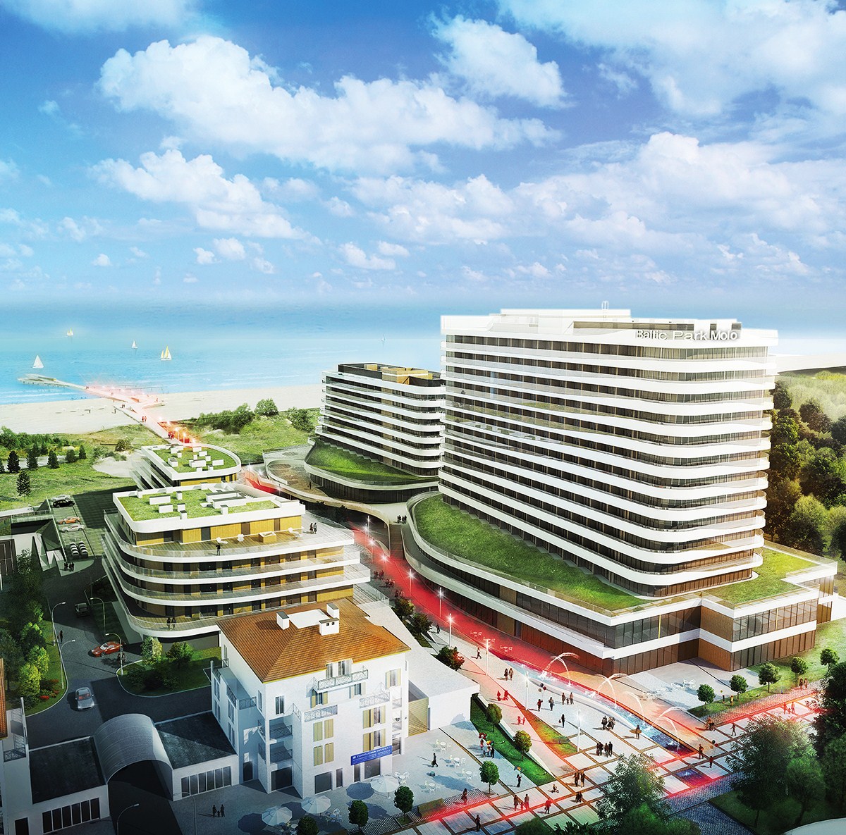 Fot. Największy na polskim wybrzeżu ultranowoczesnego kompleksu hotelowo-apartamentowo-rekreacyjnego Baltic Park Molo powstaje tuż przy świnoujskiej plaży.