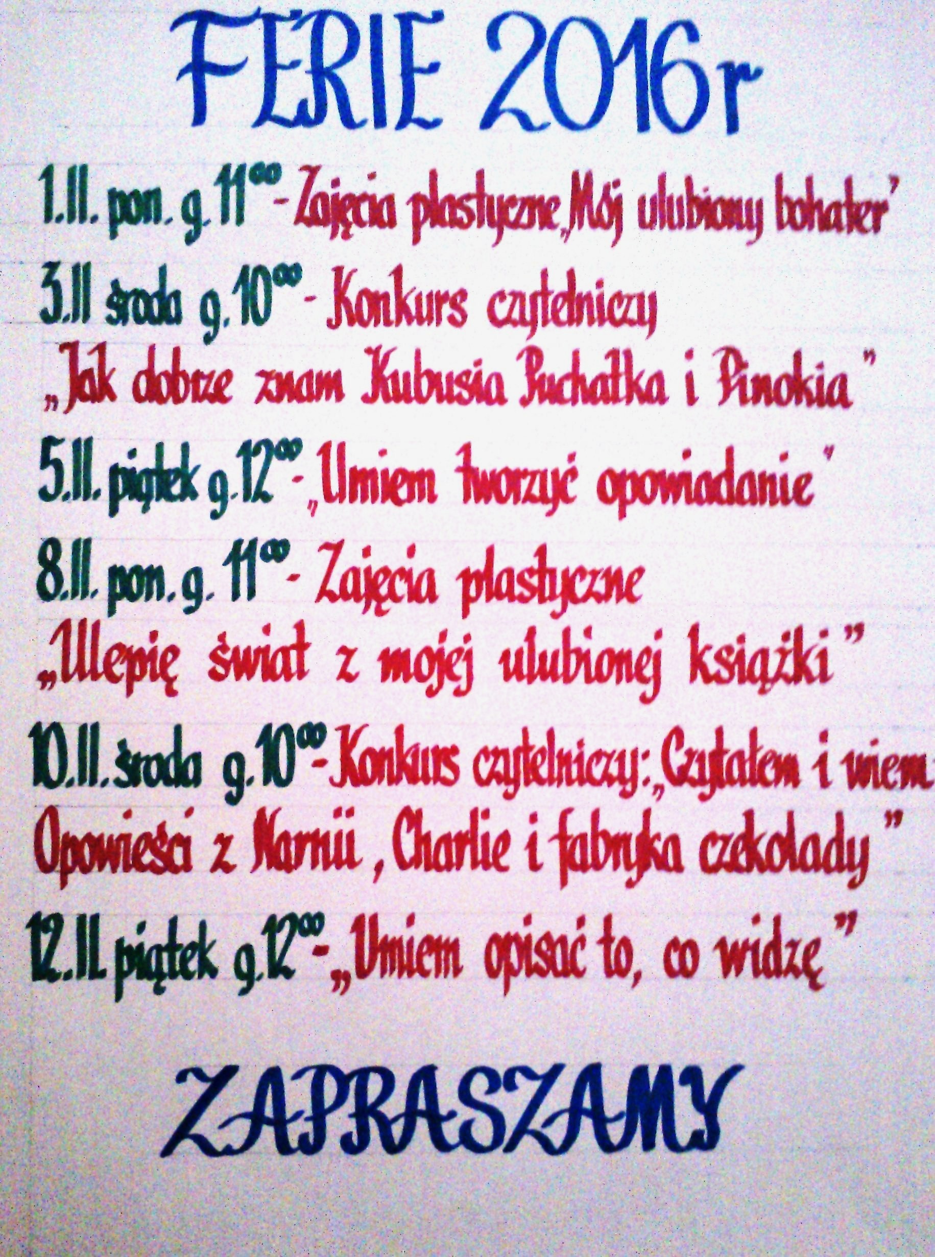 Ferie w filii biblioteki przy ulicy Grunwaldzkiej