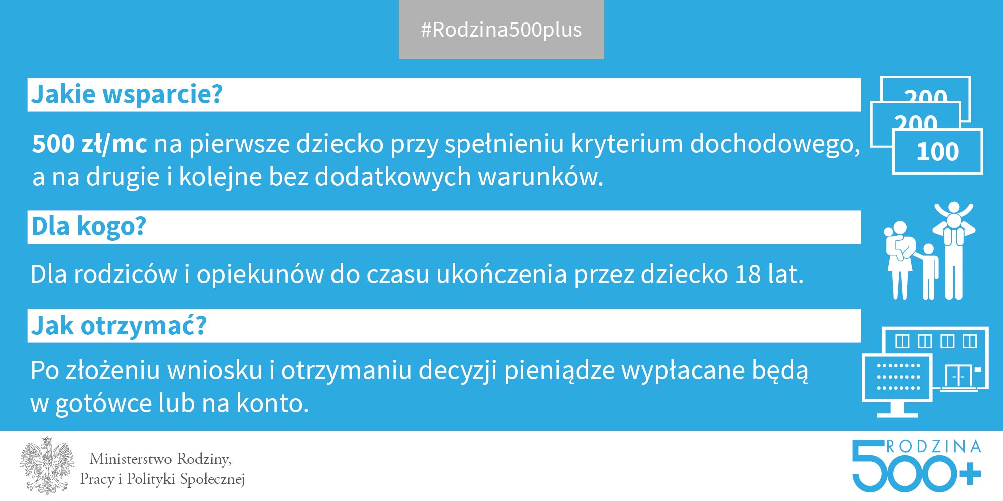 Szczegóły dotyczące programu znajdują się na stronie Ministerstwa Rodziny, Pracy i Polityki Społecznej pod adresem: http://www.mpips.gov.pl/wsparcie-dla-rodzin-z-dziecmi/rodzina-500-plus/ .