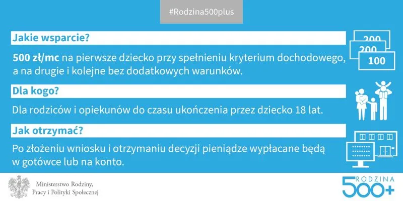 INFOLINIA w sprawie programu „Rodzina 500 plus” - 91 322 54 89.