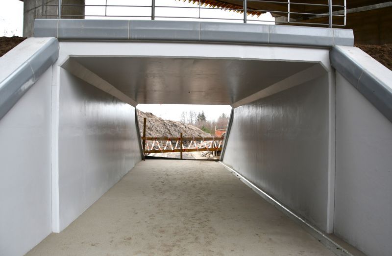 Przejścia podziemne pod liniami kolejowymi 401 i 996 – szerokość 4,5 m; długość 8 m i 16 m
