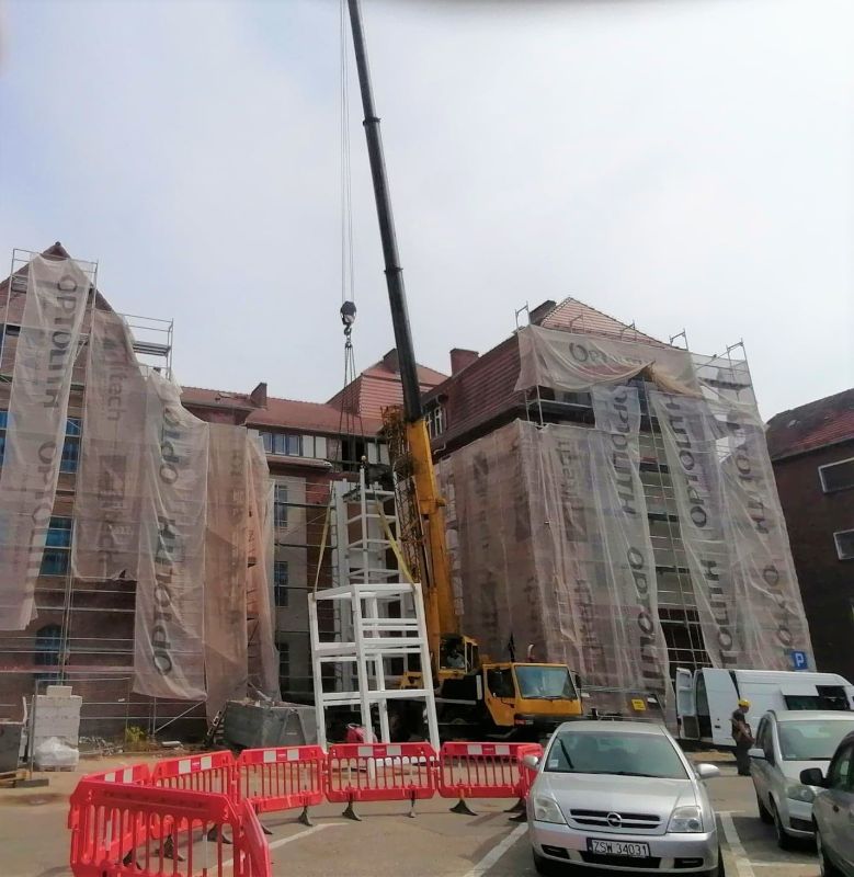 W tylnej części urzędu rozpoczął się montaż szybu dźwigowego dla przyszłej windy.